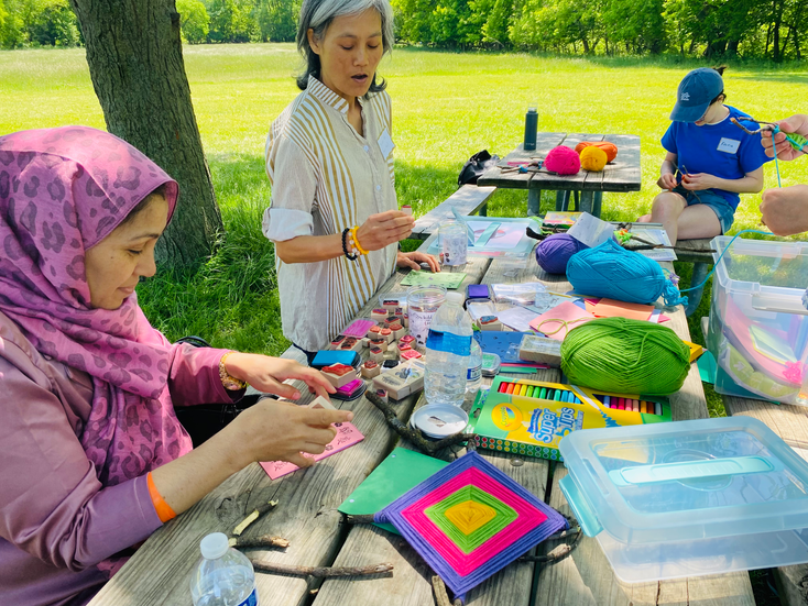 Simultaneous to their coordination of the above two projects, REACH Peer Mentors also spent several months conceiving and designing their first Nature Navigator Event. Our refugee youth leaders showcased their creativity and knowledge at this public event on May 19. Nearly 55 individuals attended this event at Bunker Hill in Caldwell Woods where REACH Peer Mentors guided them through five nature education stations developed as a way to engage other newcomer community members in interactive outdoor learning experiences that connect them to nature. Learn more about their impressive stations: Rapid Rescue, Pack & Yak, Artful Nature, Leave No Trace, and Macro Mania, in our Connecting Newcomers Blog Post.